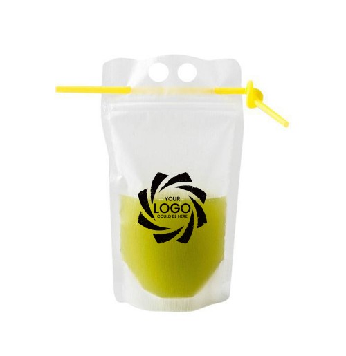 The Drinking Bag is made of eco friendly material, safe and odorless. Size: 5 1/8" × 9", 1 1/2" Bottom Gusset, Volume: 500ml/ 17oz. The translucent frosted plastic drink bag is both suitable for cold and hot drinks. Easy to carry, these clear closable zipper drink pouches are suitable for holding drink, candies, beans, dry flowers, nuts and sweats, logo can be customized.
